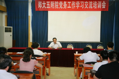 8月6日下午,我院在门诊五楼学术报告厅举行了党务工作经验交流与知识培训。党支部书记闫建华和党办主任郭芹分别从如何做好党支部工作和党务工作基本知识的角度进行了大会交流发言和辅导培训。党委书记李新华、院长王建平、党委副书记兼纪委书记徐翠英、副院长王新军、胡慧华出席了会议,会议由副书记徐翠英主持,医院所属12个党支部的支部书记、支部委员、党小组长和党群部门的同志80余人参加了会议。
