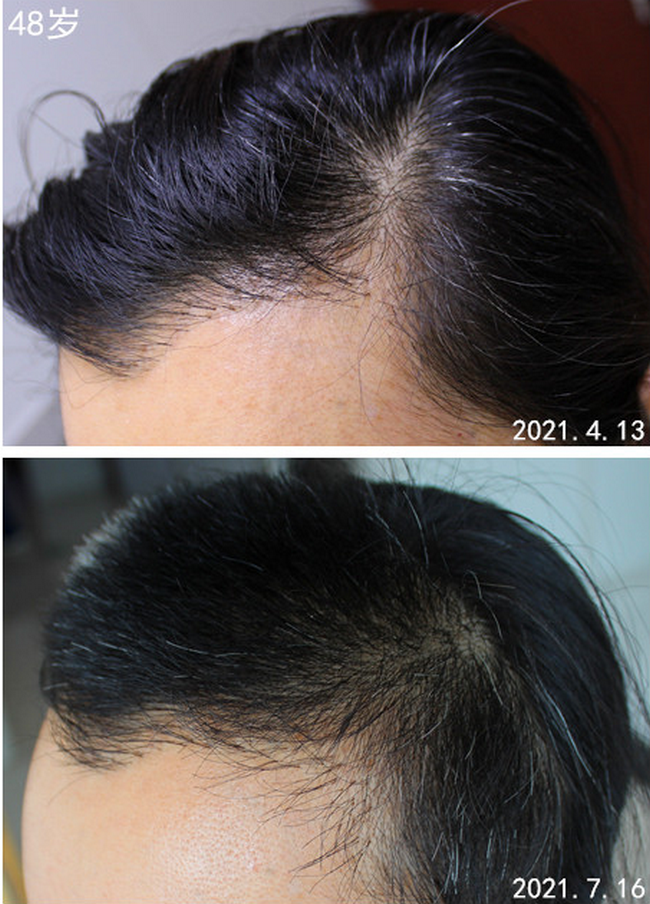 4.女性脱发:主要表现为鬓角上移、发缝变宽、头顶稀疏、细软,通过细胞微移植技术,可有效缓解女性患者的脱发问题。
