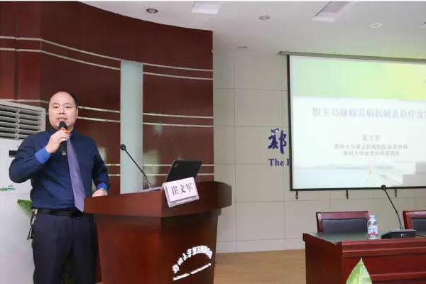 郑州大学五附院院长郑鹏远教授出席大会并致开幕词。郑州大学五附院副院长王兵教授、血管外科副主任崔文军、超声诊断科主任杨青、体检科副主任胡倩等在腹主动脉瘤疾病筛查及治疗方面累积丰富实践经验的专家对来自全国各地多家医院相关科室的近200名医生进行交流培训。与会代表们还于当天下午在郑州大学五附院实地观摩了AAA超声筛查和相关科室。
