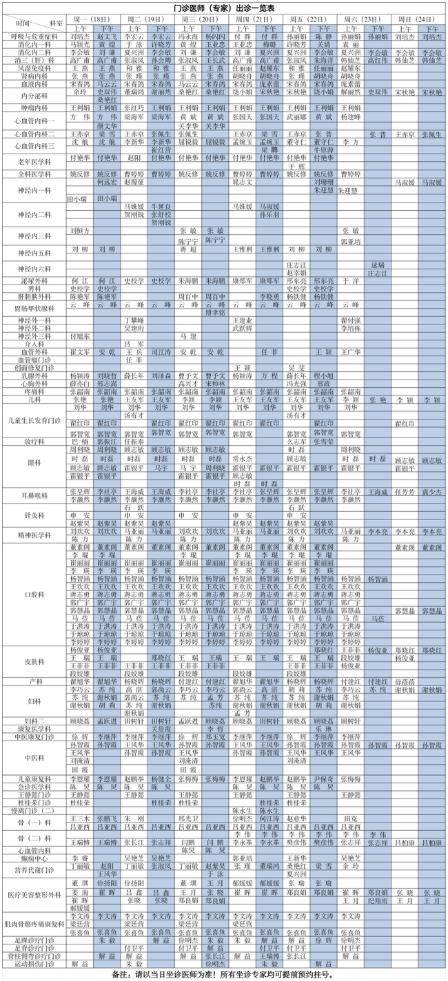为更好地方便广大患者就医问诊,现将郑州大学第五附属医院门诊医师(专家)出诊一览表(2023年9月18日——9月24日)公布如下。
