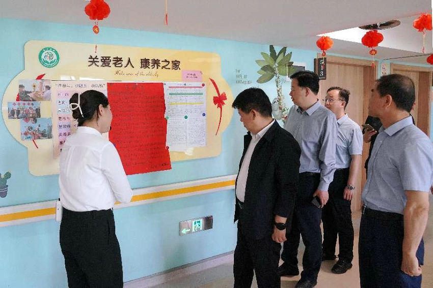 2024年5月21日,河南省卫生健康委党组成员、副主任、河南省中医药管理局局长王福伟,老龄健康处处长王自立、二级主任科员陈克,郑州市卫生健康委党组成员、三级调研员张士东,老龄健康处处长王宏刚、二级主任科员梁国江、科员吴承飞一行7人莅临郑州大学第五附属医院调研医养结合工作。郑州大学五附院党委书记韩晔,党委副书记、副院长杨怀玉,副院长李哲出席会议,党政办、医养结合办公室相关职能部门负责人参加座谈会。