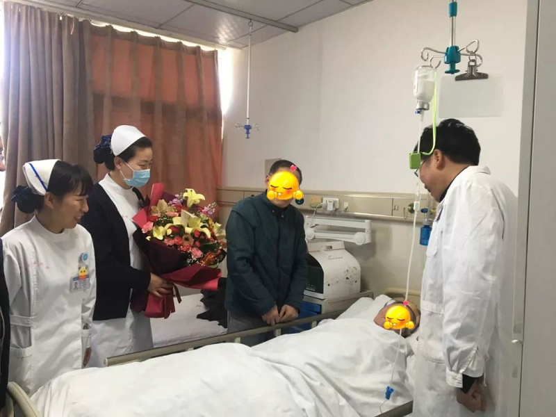 热闹的气氛吸引了其他病房的很多患者和家属也前来“沾喜庆”,大家纷纷拿出手机为老人家拍照,一起唱生日歌,合影留念并送上自己的祝福。看到这么多人为自己祝寿,老人家也铿锵有力地回应:“谢谢大家!”虽然话语简短,但是可以看出她的心情非常激动。老人的儿女们也对科室医务人员纷纷表示感谢,感谢他们让母亲过了一个特别的生日。