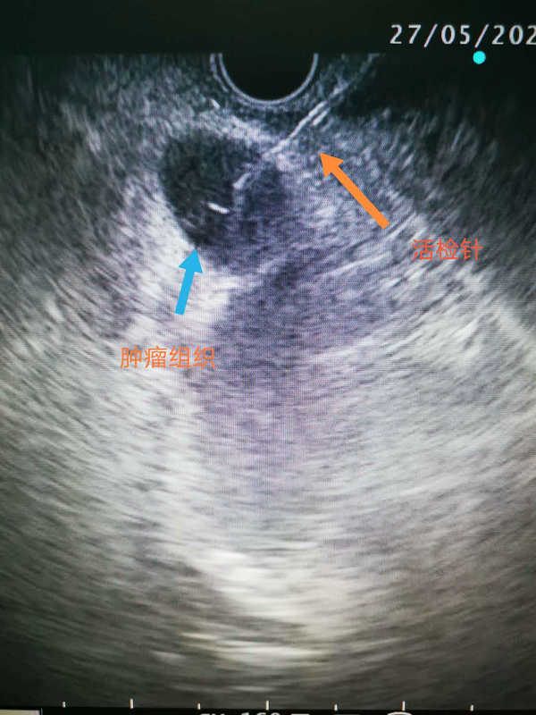 想要明确病因确诊病情,需要取活体组织送去病理检查才行。而腹膜后的病变,由于位置的特殊性、隐秘性,想要活检对外科和内科都是相当困难的。在经过一番思考以后,精通超声内镜的刘医生决定用超声内镜引导下细针穿刺活检术(EUS-FNA)来帮助病人诊断治疗。