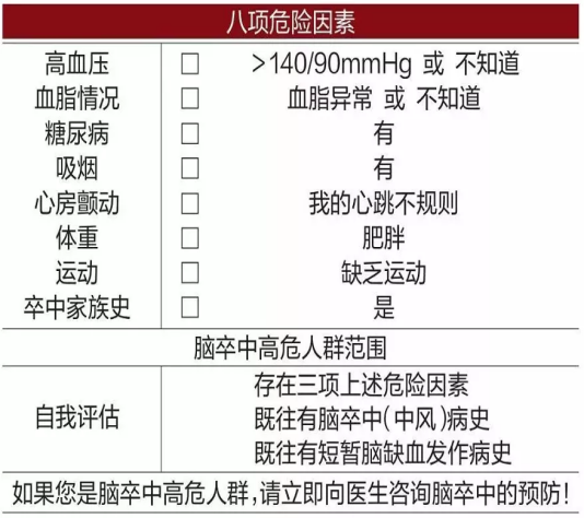 是我国成年人第一位致死致残疾病,具有四大特点:高发病率、高致死率、高致残率、高复发率!脑卒中缺乏有效的治疗方式,目前认为预防是最好的措施。