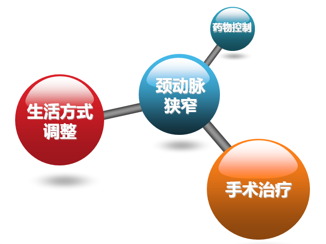 首先要明确颈动脉狭窄的原因,如常见的动脉粥样硬化,以及不常见的大动脉炎、肌纤维发育不良等,再针对原因进行治疗。