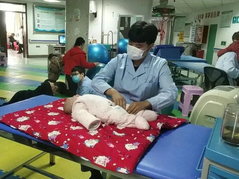 患儿被发现时已经是重度一氧化碳中毒,全身青紫,意识丧失,大小便失禁,血压下降,心跳微弱,经当地医院紧急抢救,挽救了孩子生命。为了进一步康复治疗,经过三百多公里紧急转运郑州大学五附院儿童康复医学科进行康复治疗。在李恩耀主任、尹保奇副主任带领下,组织全科医护精英团队,制定合理康复救治方案,患儿现虽然已经脱离危险,但因为缺氧较重,时间较长,大脑已经受到严重损伤,病情十分严重,医务人员竭尽所能,尽可能减少一氧化碳中毒性脑病后遗症。